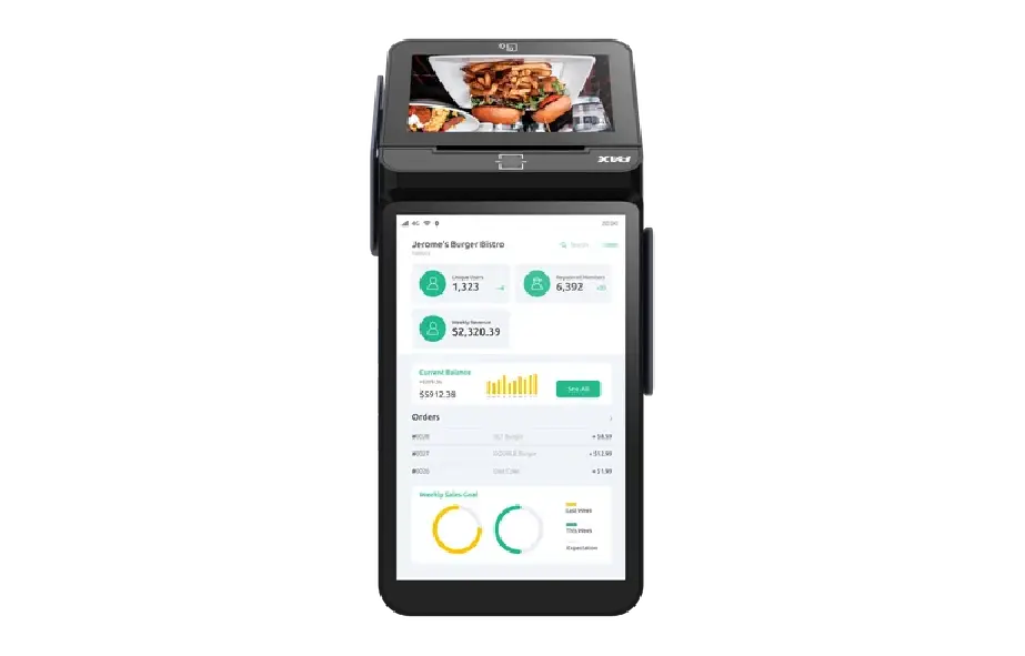 The A920 Pro features a larger screen, faster performance, and optional infrared scanner, combining sleek design, built-in camera, thermal printer, and high-capacity battery—perfect for fast, mobile environments.